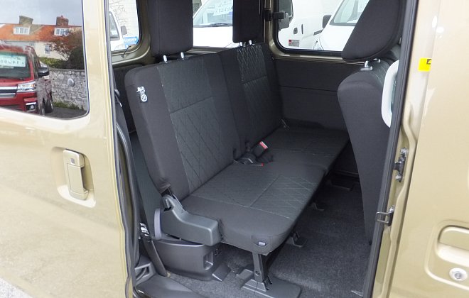 This model has full sized rear seats and 'pop out' windows in the electric sliding rear doors